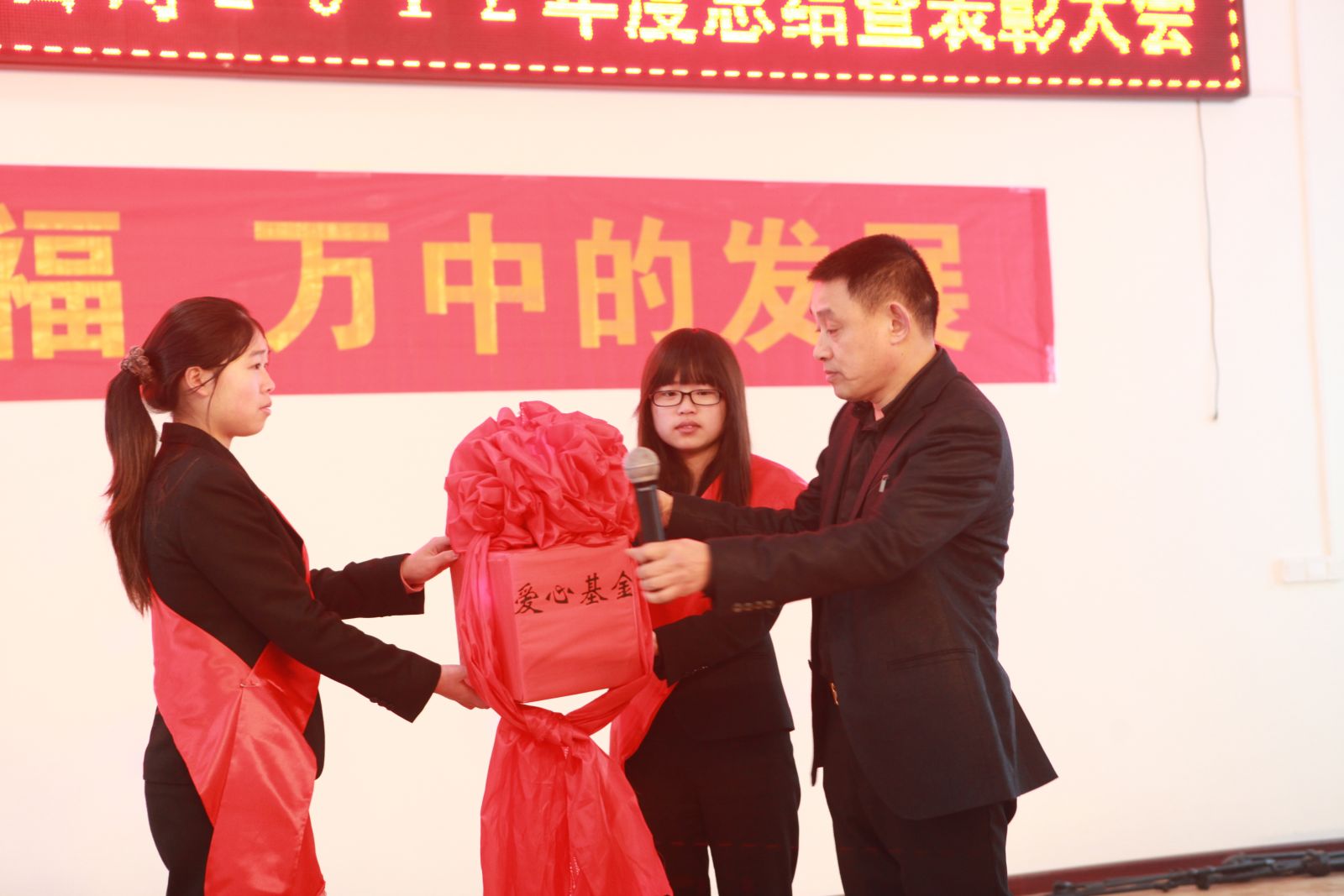 武漢萬中建筑勞務(wù)有限公司,在2012年度總結(jié)暨表彰大會(huì)上,事長(zhǎng)葛天才帶頭成立了“民工愛心基金會(huì)”,號(hào)召公司全體員工捐資幫助特困的重病農(nóng)民工兄弟家庭。董事長(zhǎng)說:“打工這么多年,見到了太多無錢醫(yī)治的重病農(nóng)民工兄弟,讓他感到心酸。”為此特地成立了愛心基金會(huì)。